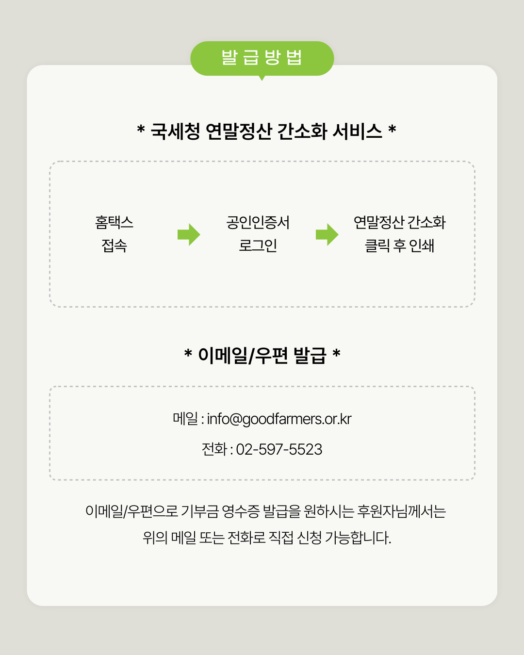 2025년 굿파머스 기부금영수증 발급을 안내드립니다.